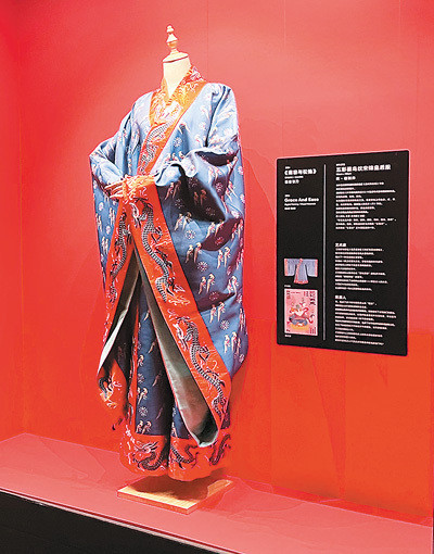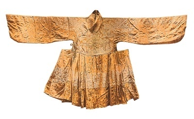 五彩翟鸟纹宋锦皇后服(创制件)。